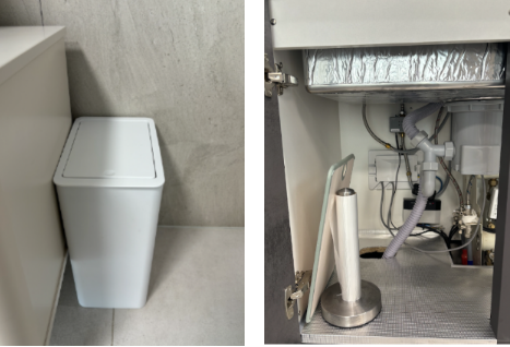 Place food waste in the disposable plastic bag provided in the kitchen.Seal it tightly and leave it in the kitchen area.