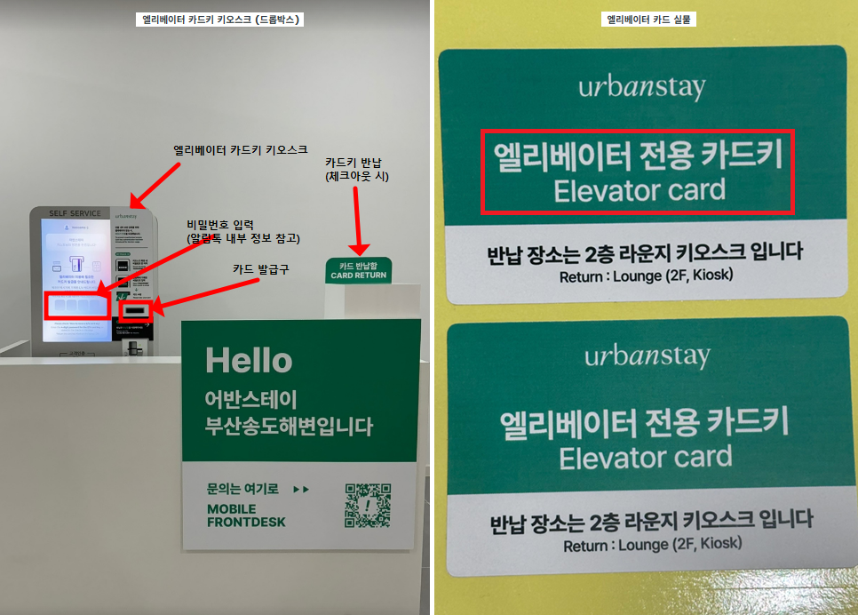 After checkout, please return the elevator card key to the return box inside the 2F Urbanstay Lounge.