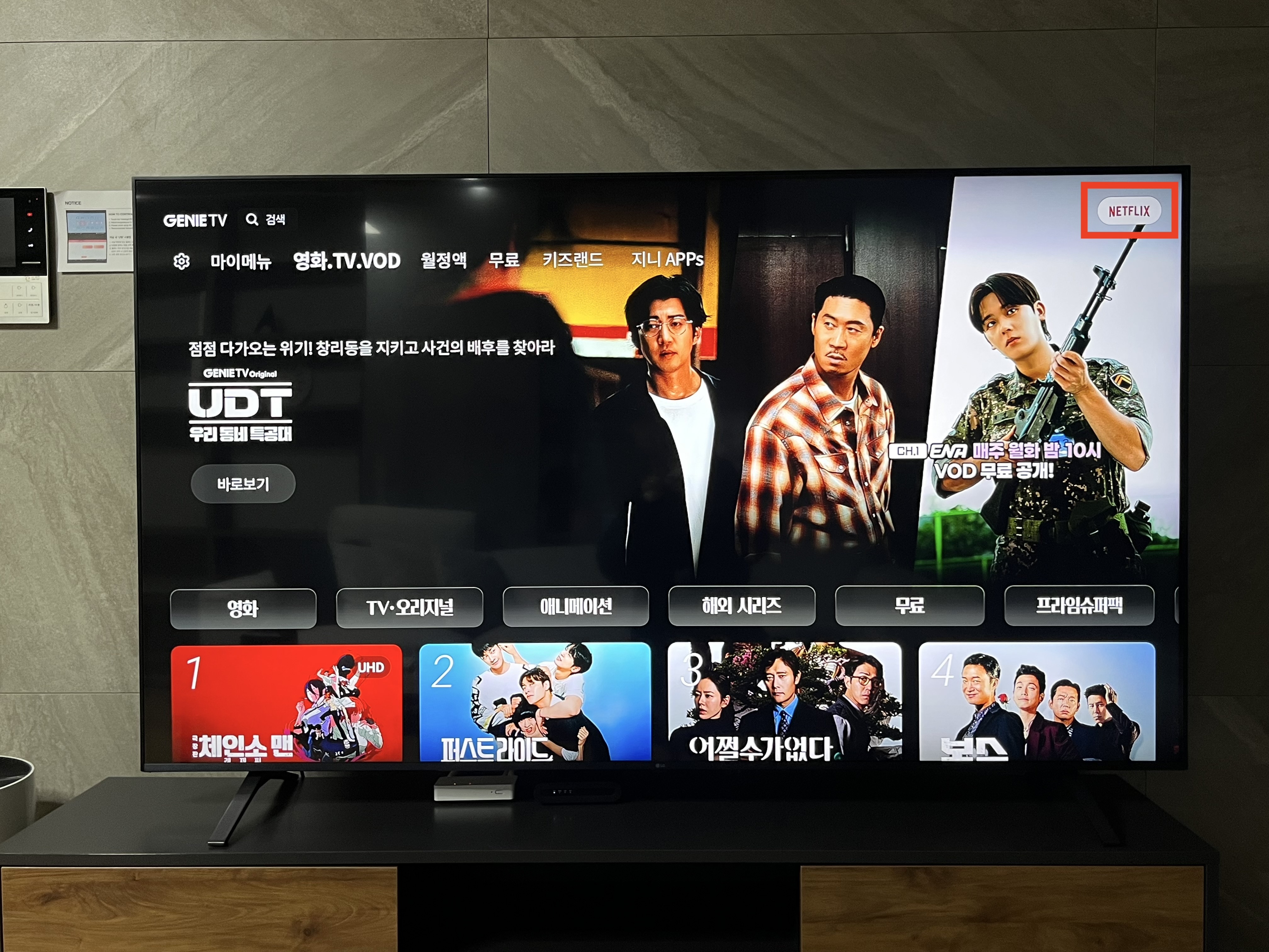 Netflix and Youtube are available (Please use your personal account.)