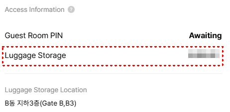 The password for the luggages storage via a check-in message (email / Kakao Talk / SMS) on the day you check in.