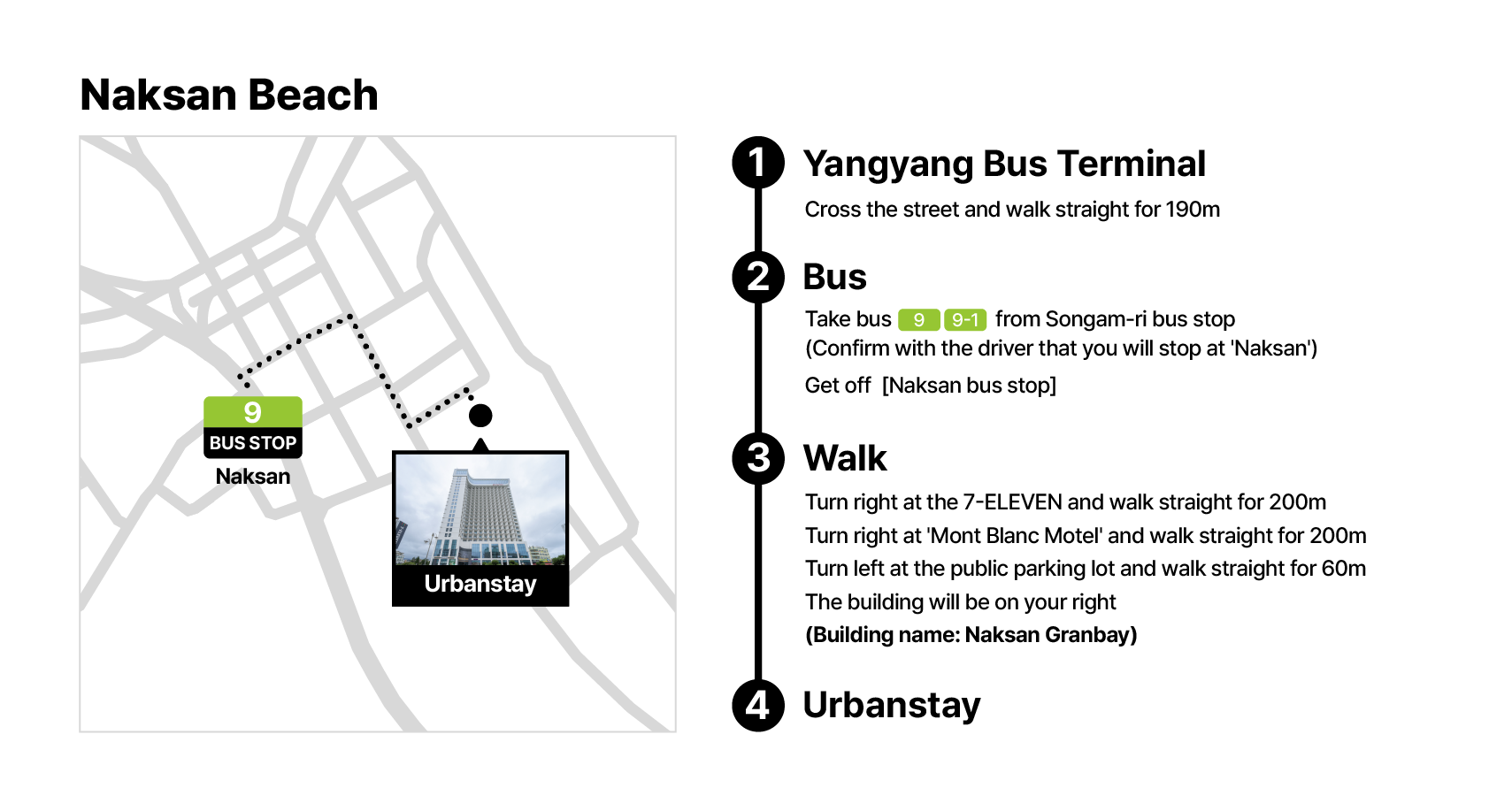 ④ [Naksan bus stop] Turn right at the 7-ELEVEN and walk straight for 200m