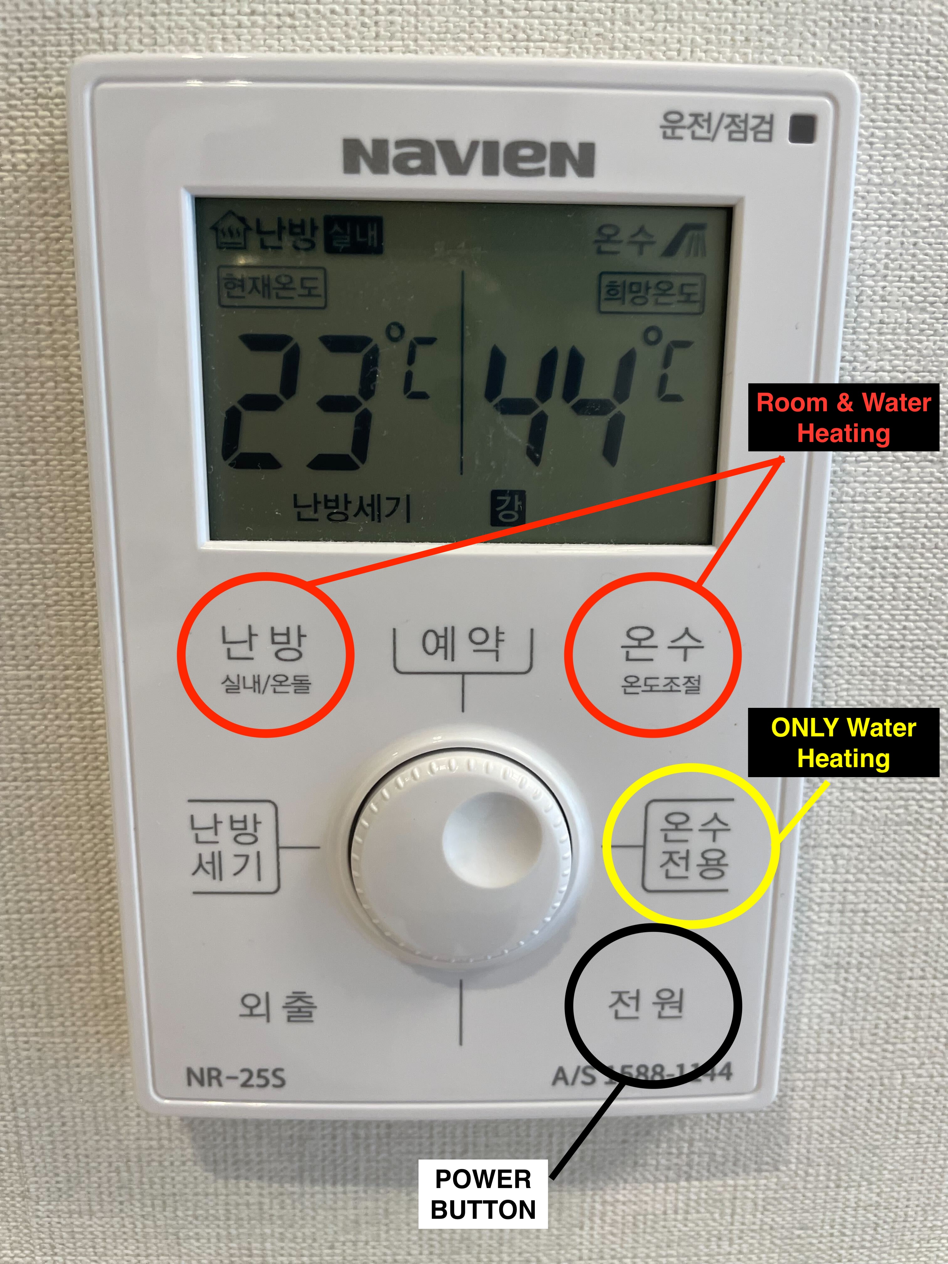 If you wish to use only hot water, press the '온수전용' button. (Yellow circle)