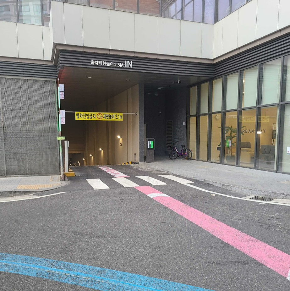 Vehicles with a height over 2.1 meters are not allowed to enter or park in the garage.