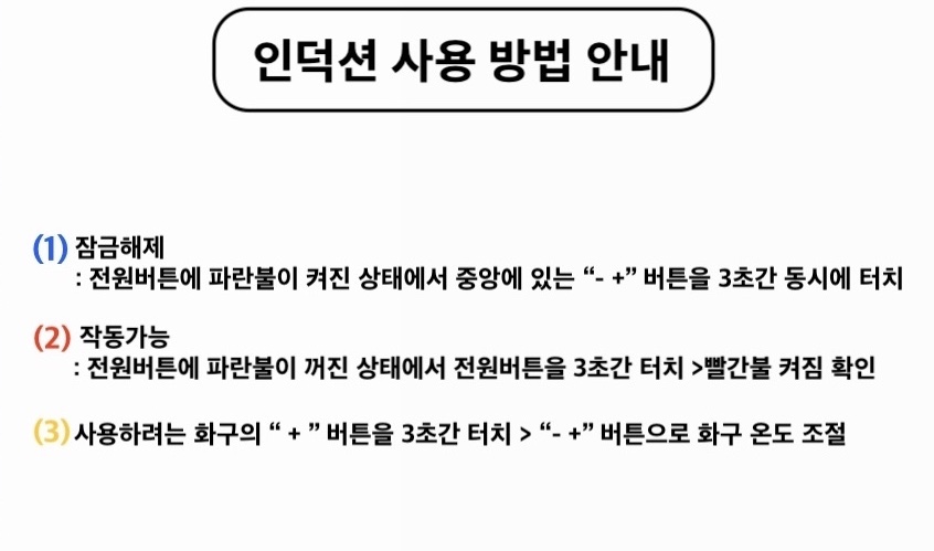 ③ 火口使用 使いたい火口の 「+」 を3秒長押し → 「-/+」 で火力調整