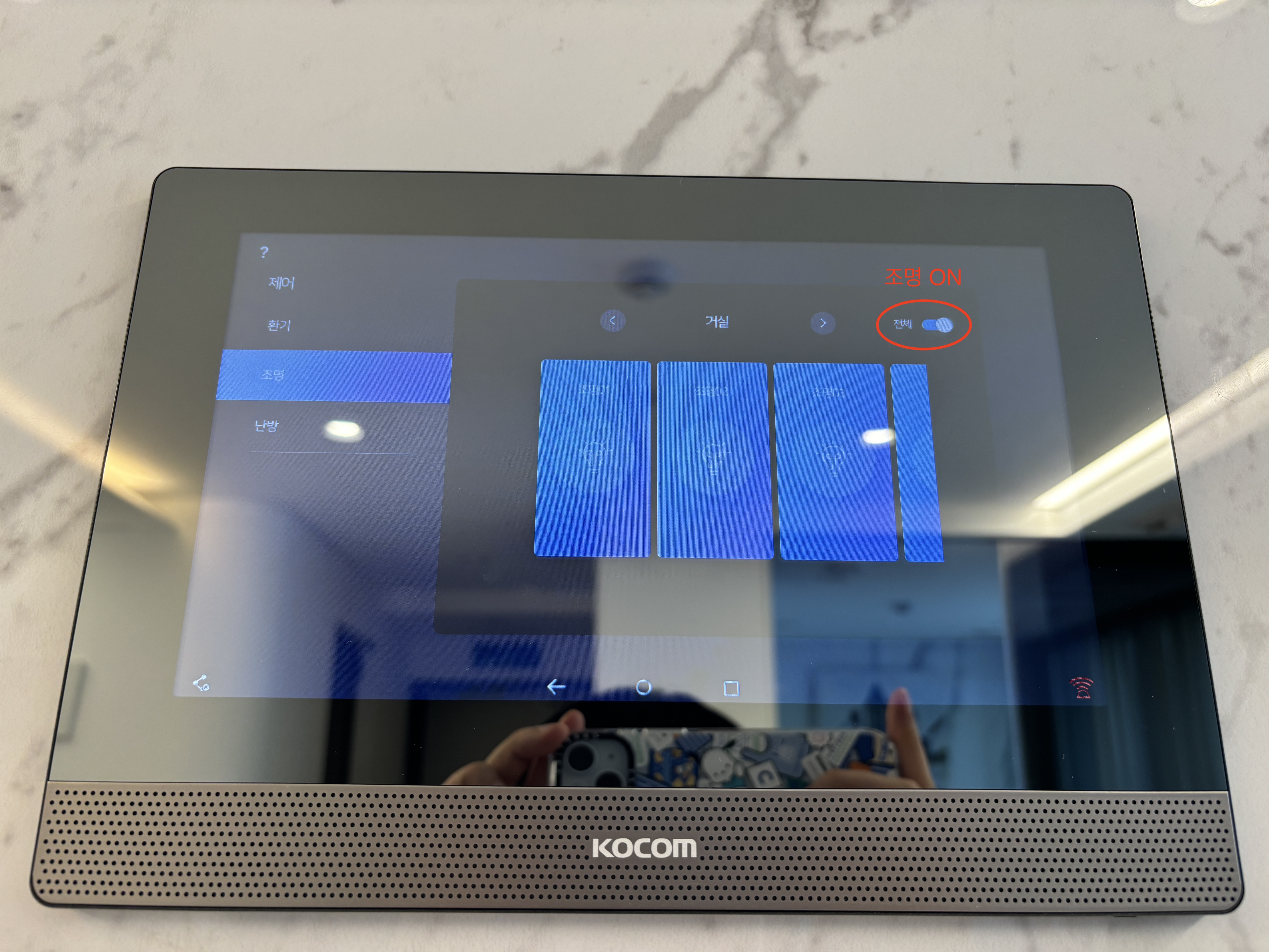 個別の照明を制御するには「조명01(照明01)~ 조명04(照明04)」をタップしてください