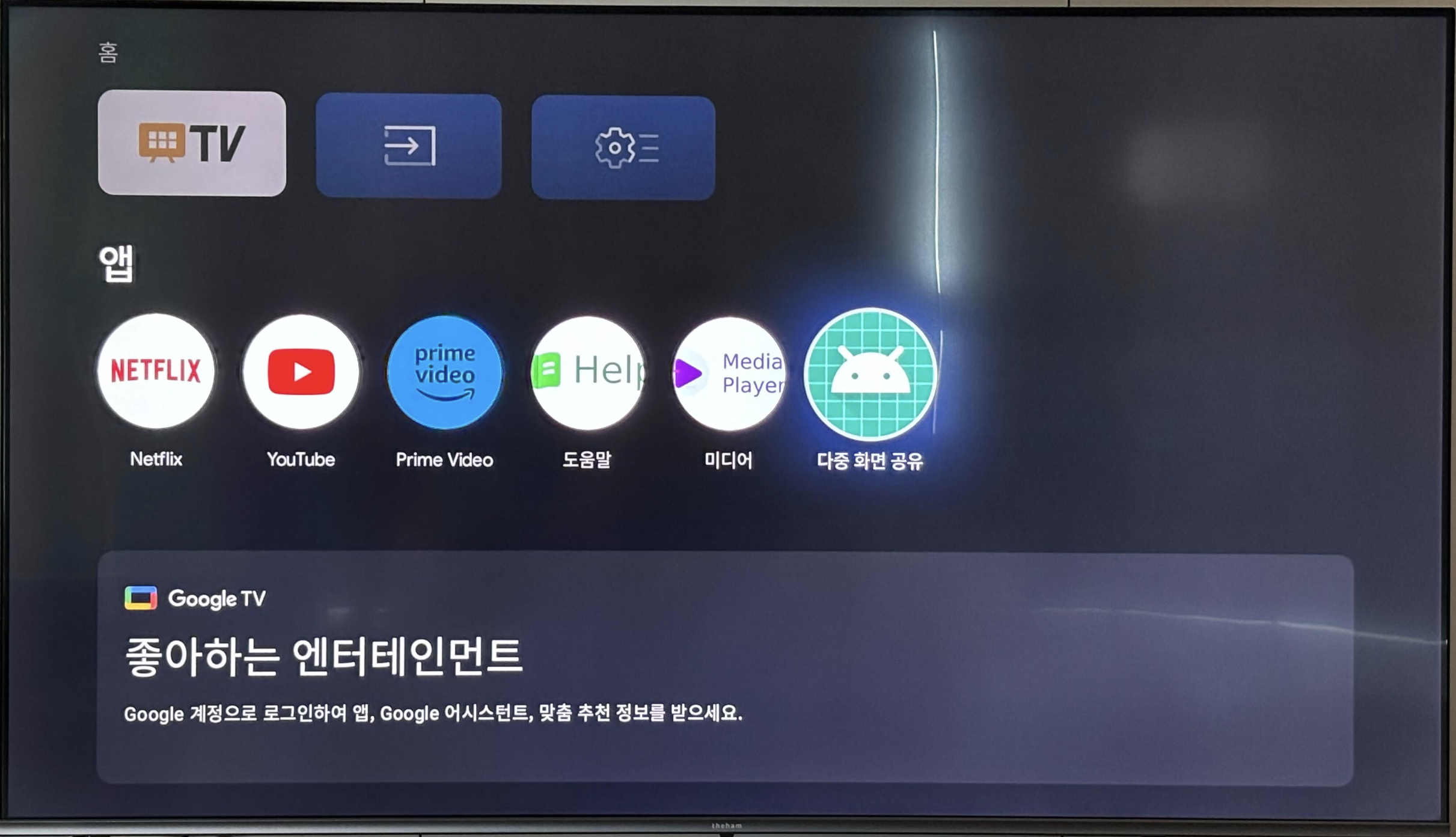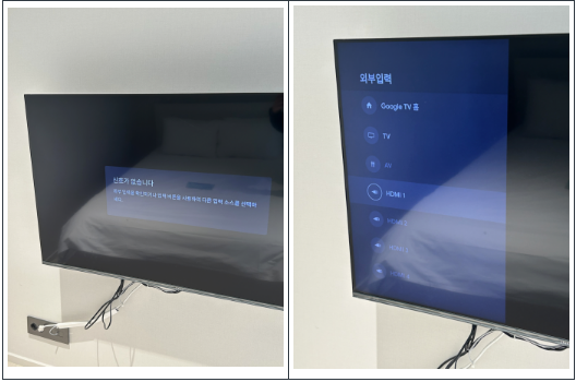 「외부입력(外部入力)」→ 有効化された(白色表示)HDMIチャンネルに接続
