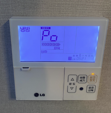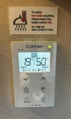 외출(外出)に変更したい場合は、該当 状態で 난방/외출(暖房/外出) ボタンを 1回タッチすると 写真のように変更されます。
