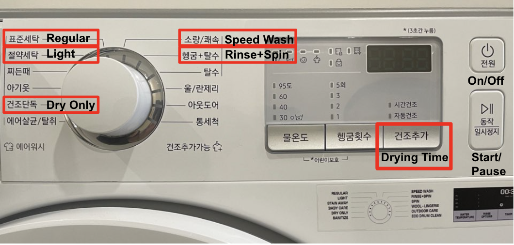 2. 中央のホイールを回して「건조단독(乾燥のみ)」を選択します。
