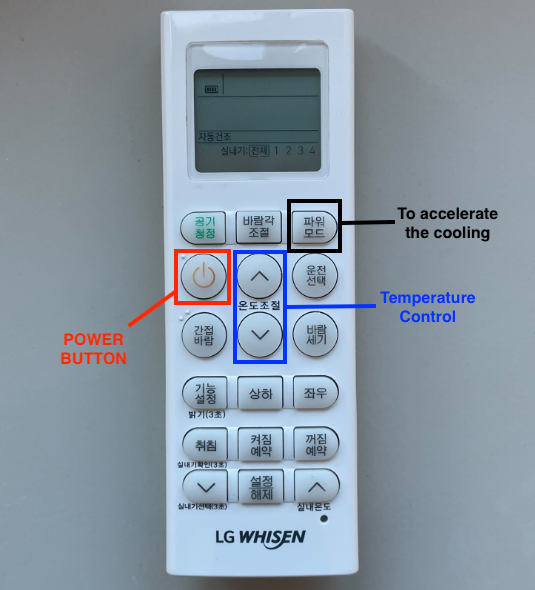 「파워모드(パワーモード)」ボタンを押すと冷房を加速できます。