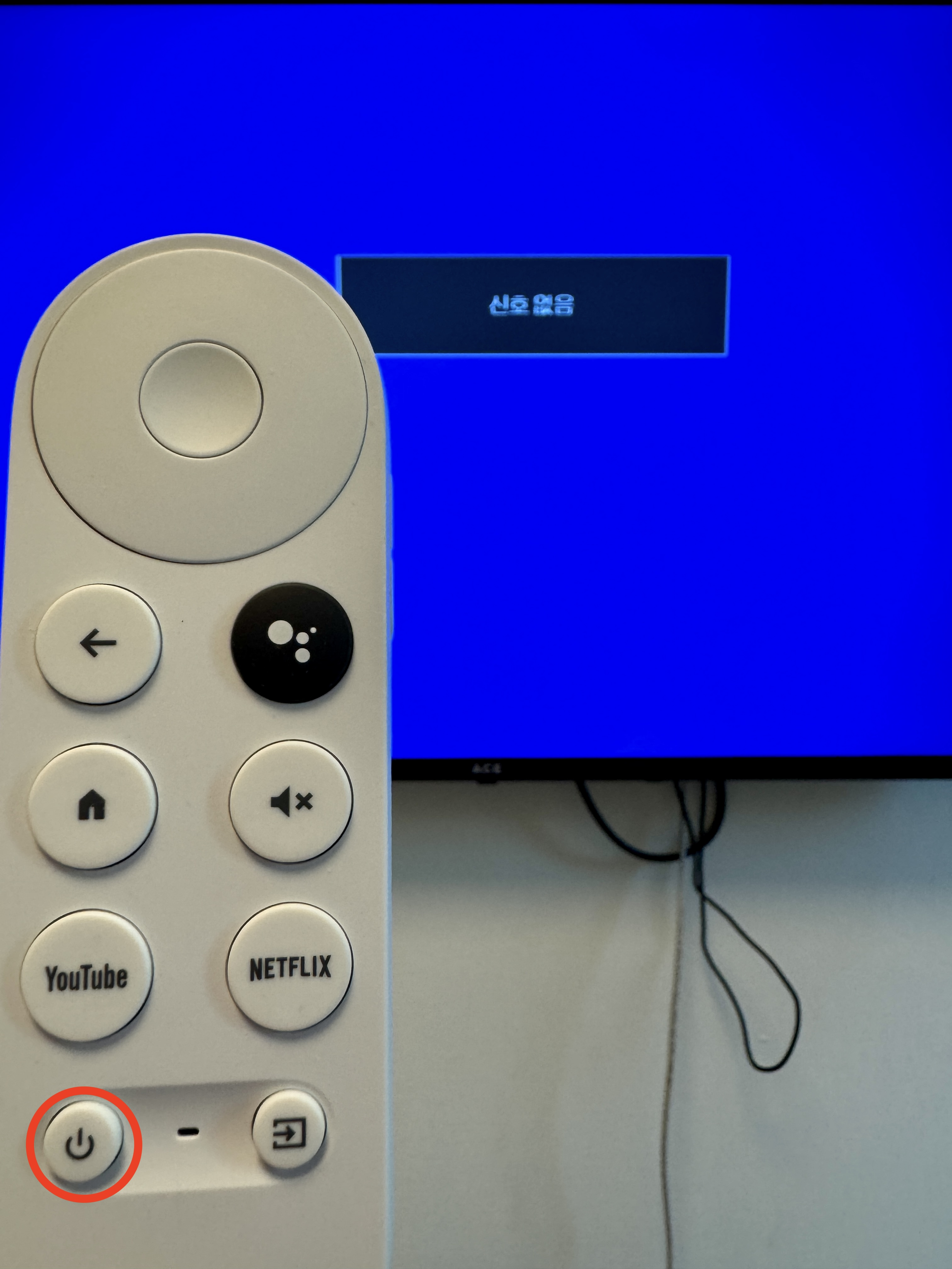 「신호없음(信号なし)」と表示される場合は、リモコンの電源ボタンを押してください。