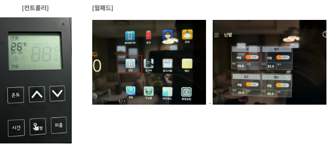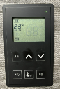 ボイラーコントローラーがOFF状態の場合、「외출(外出)」ボタンを3秒程度押します。