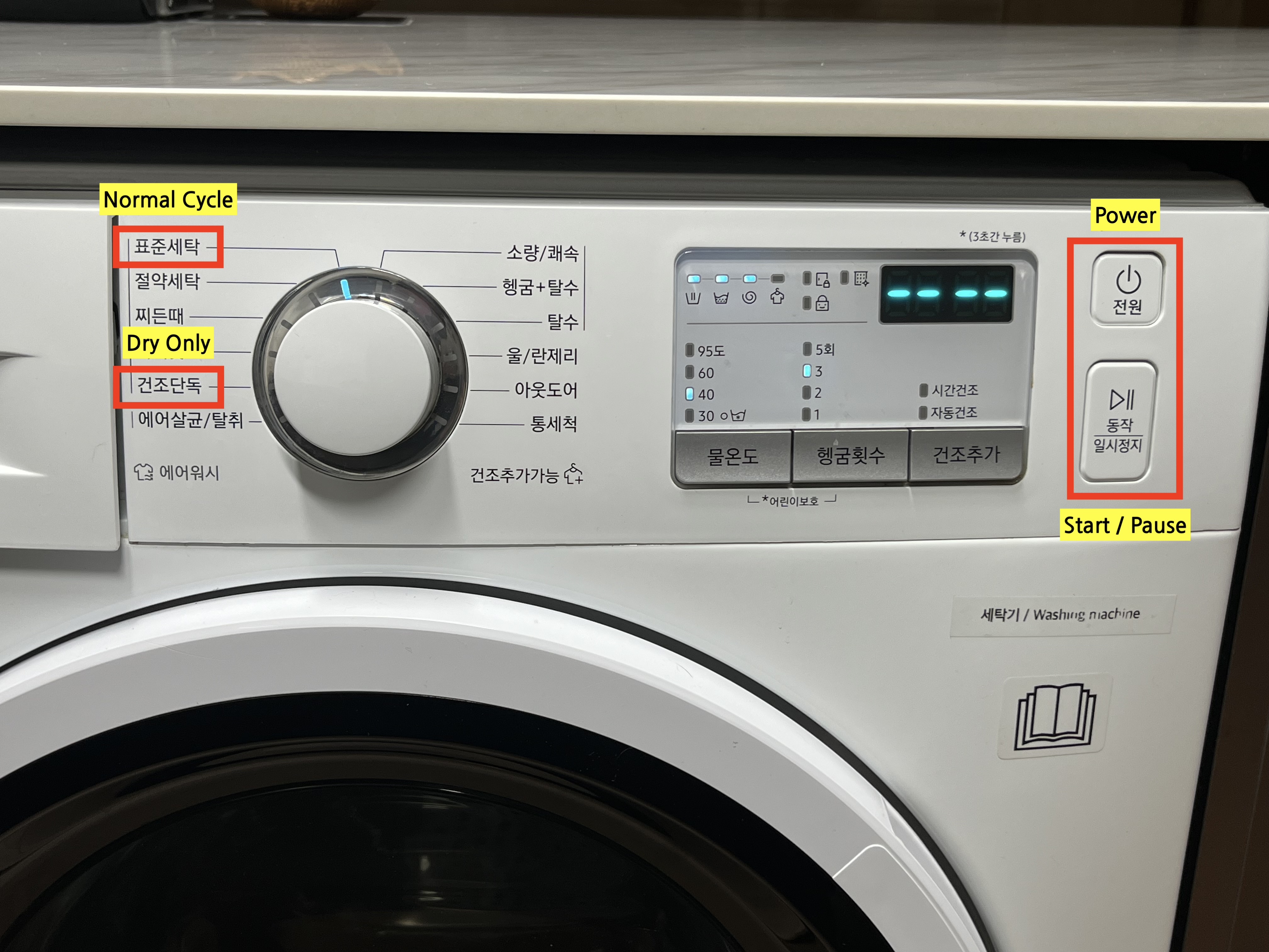 ※ 洗濯機の使用中に停止ボタンを押すと、洗濯機のドアは開きません。洗濯コースを再起動して終了するまでお待ちください。