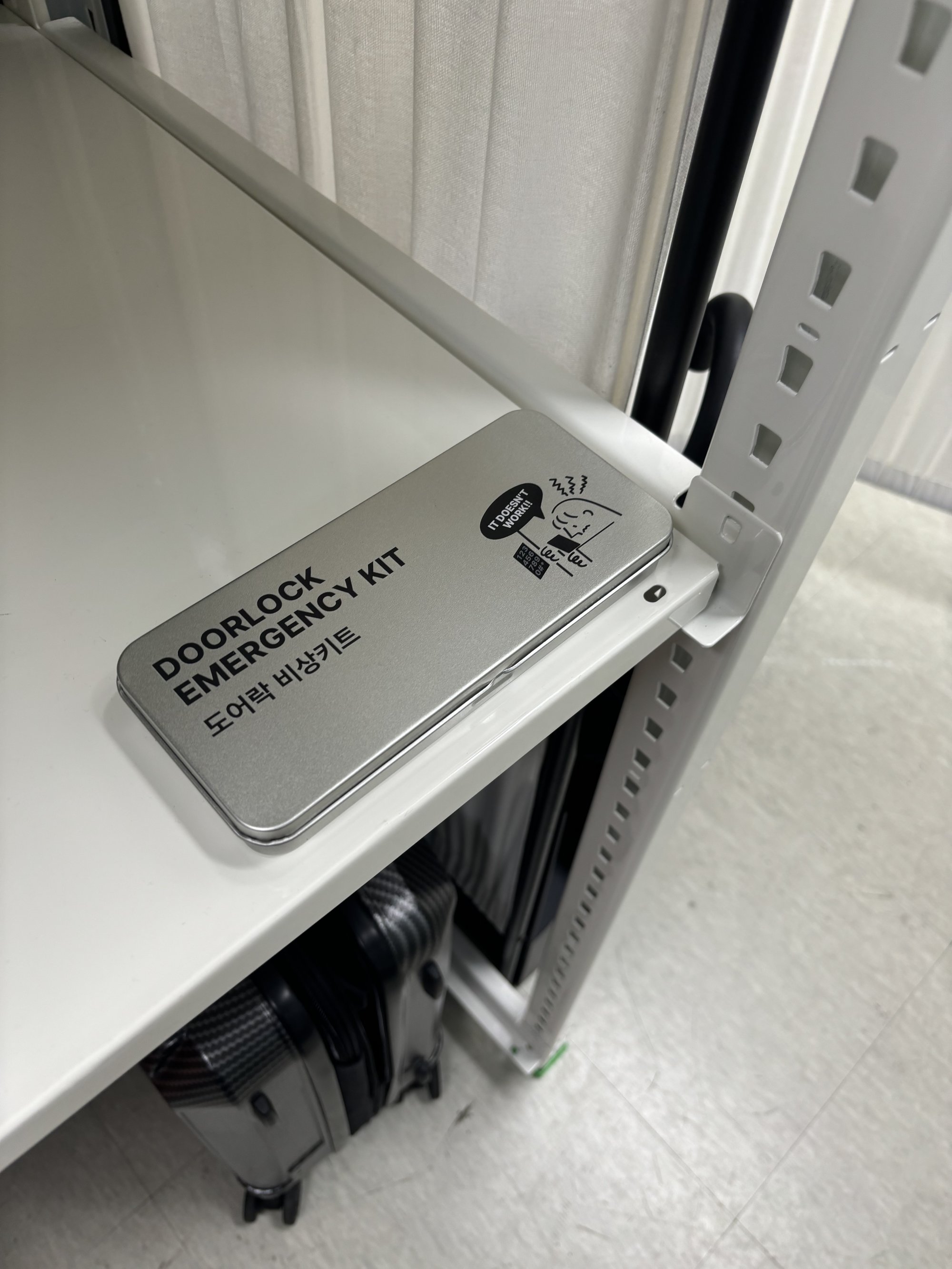 23:00 – 09:00(深夜時間帯)荷物保管室内に緊急ドアロックキット(ドアロック用 単三電池 、9Vバッテリー)をご用意しております。