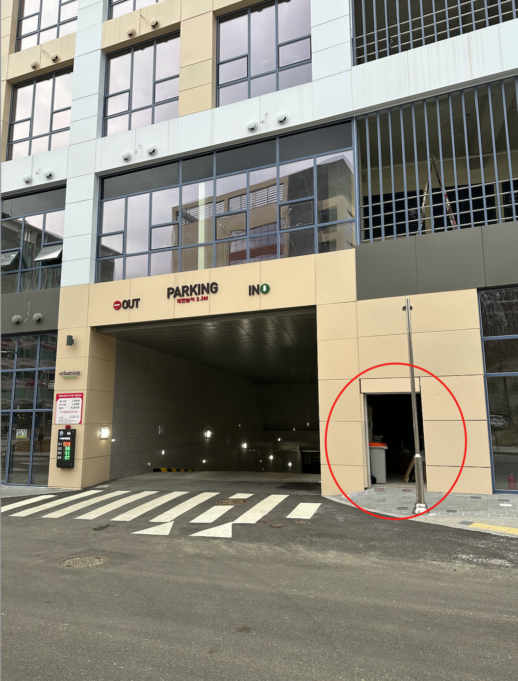 분리 수거장 : 지하 1층 엘리베이터 옆 (종량제 봉투 및 음식물 봉투 제외)