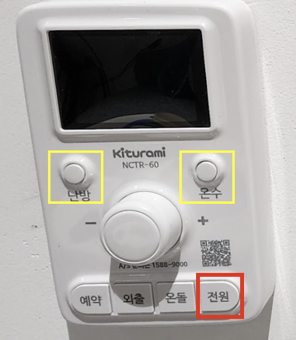 A. 귀뚜라미 보일러 사용법 > 전원 켜신 후, 온수 누르기