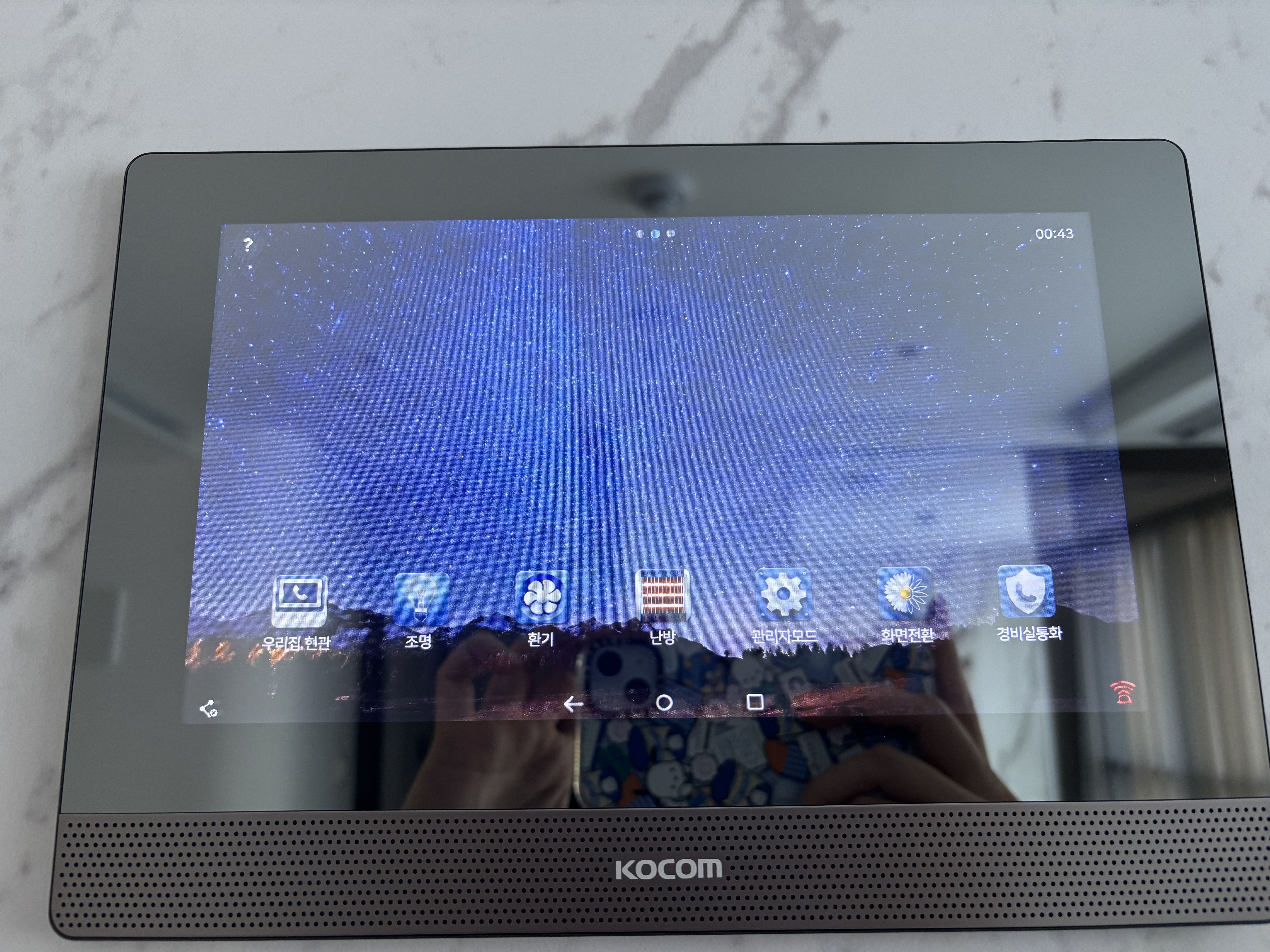 A2. KOCOM 이라는 거실 화면 패드를 통해 방마다 조명 조작이 가능합니다.