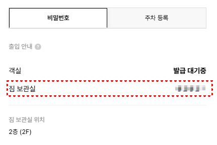 택배 서비스 진행 시, 2층 라운지 내 짐 보관실에 배송 요청 (택배 요청사항 기재 : 2층 어반스테이 라운지 짐 보관실 , 비밀번호 공유)