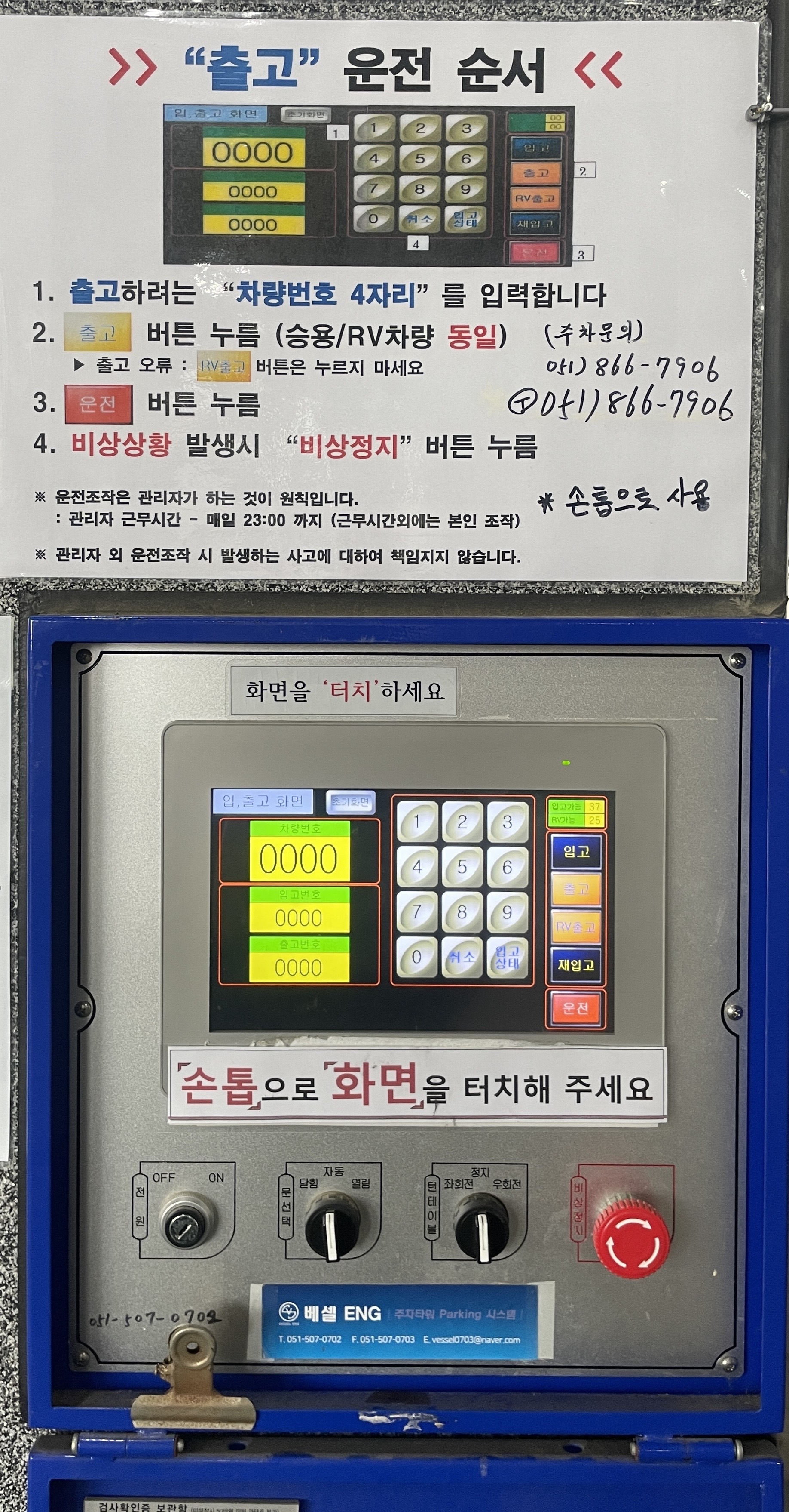 주차타워 출고 방법 (주차타워 입구 왼쪽편에서 해당 설명 확인 가능)