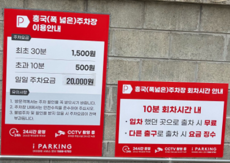 A1. 입차 기준 24시간, 10,000원 정산됩니다.
