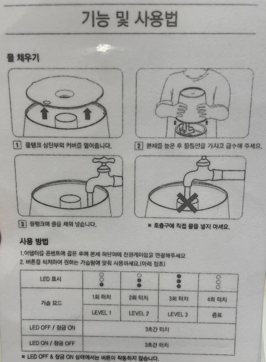 물통의 물을 충분히 채운 후 이용 부탁드립니다.