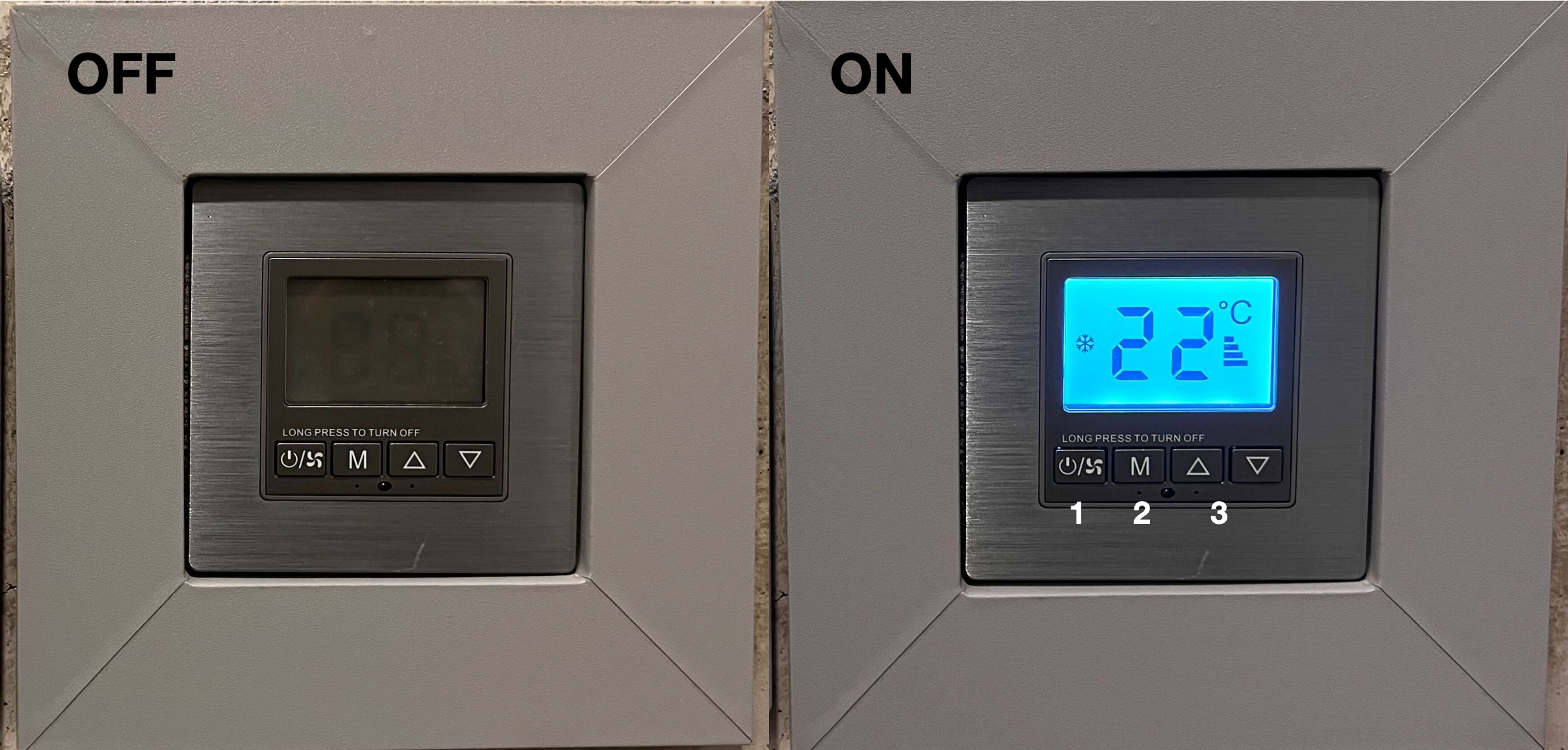 A2. 리모컨 설정온도 외에 벽면 컨트롤러 설정온도를 동일하게 맞춰주시면 됩니다.