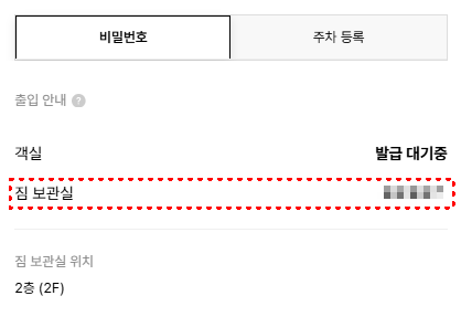 비밀번호 : 체크인 당일, 알림톡/문자/이메일를 통해 확인 가능 (오후 13시 일괄 발송)