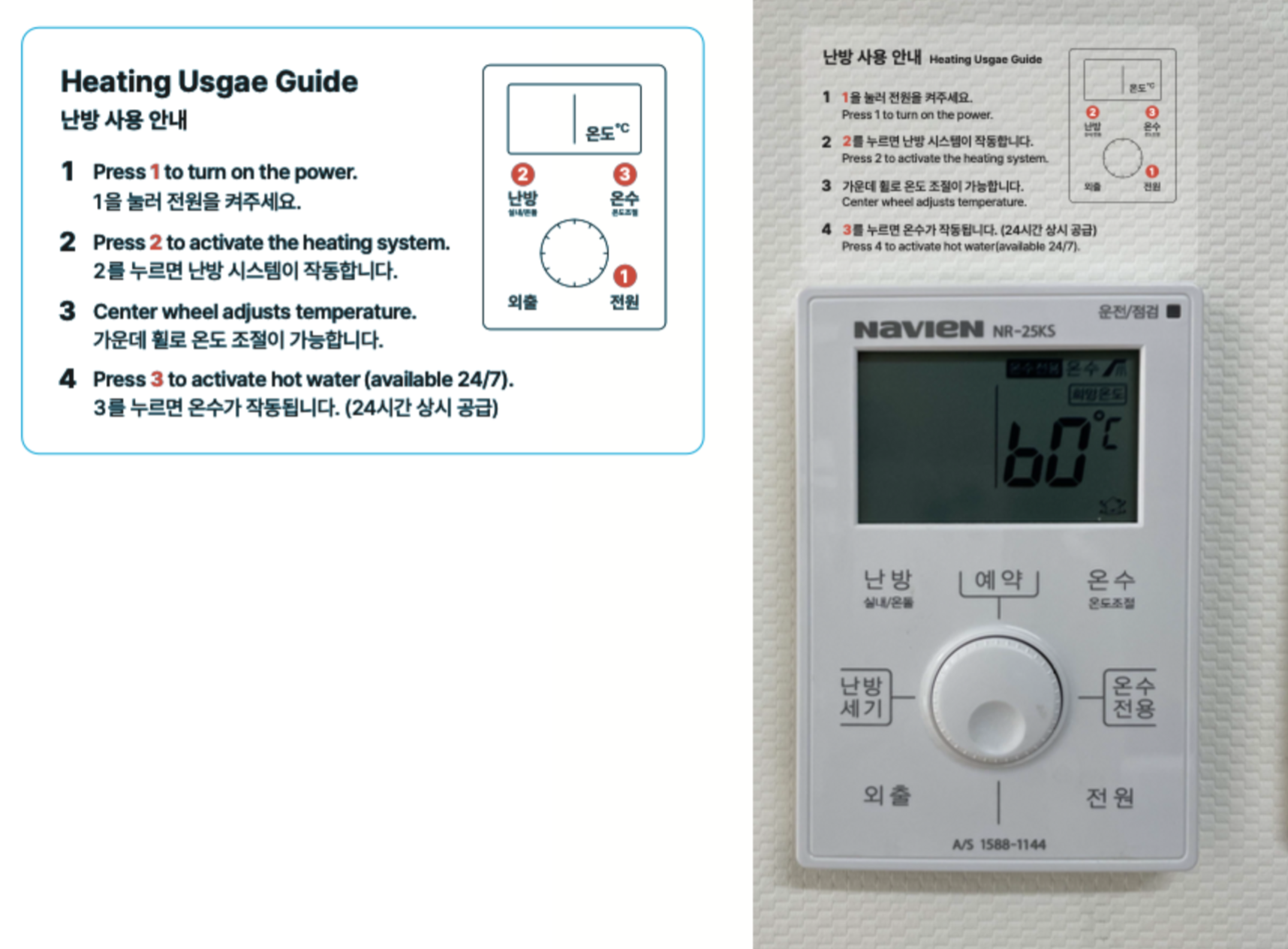 조작방법 : 객실 내 벽면에 부착된 컨트롤러로 조절 가능합니다.