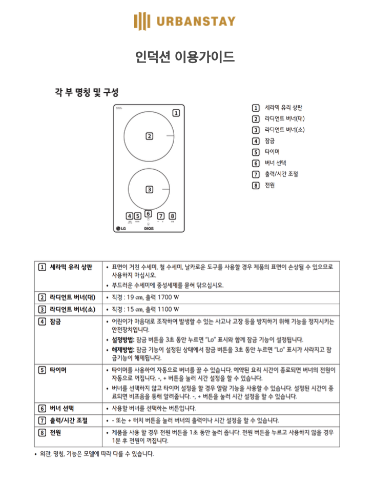 ※연기가 많이 발생하는 구이(육류/생선 등)은 조리하실 수 없습니다.