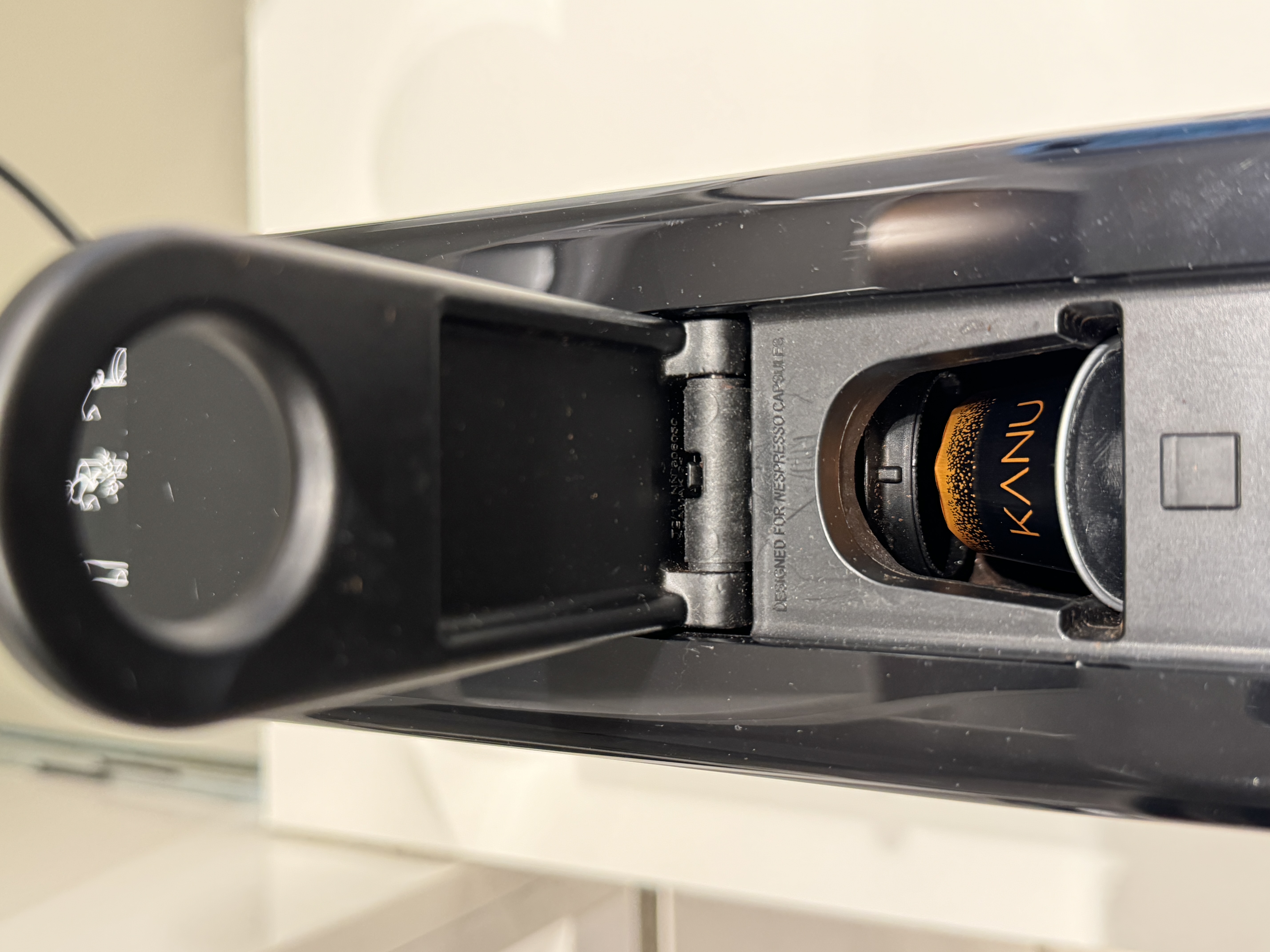 투입구를 열고 커피 캡슐을 넣어줍니다.
