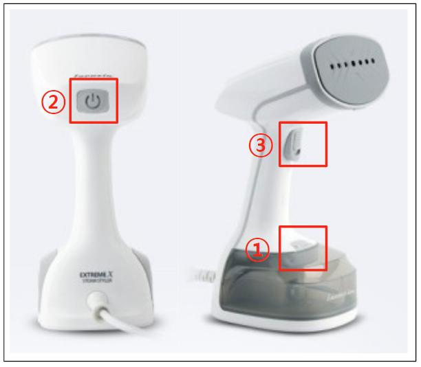 3. ③ 버튼을 눌러 스팀을 뿌리며 사용 가능합니다.