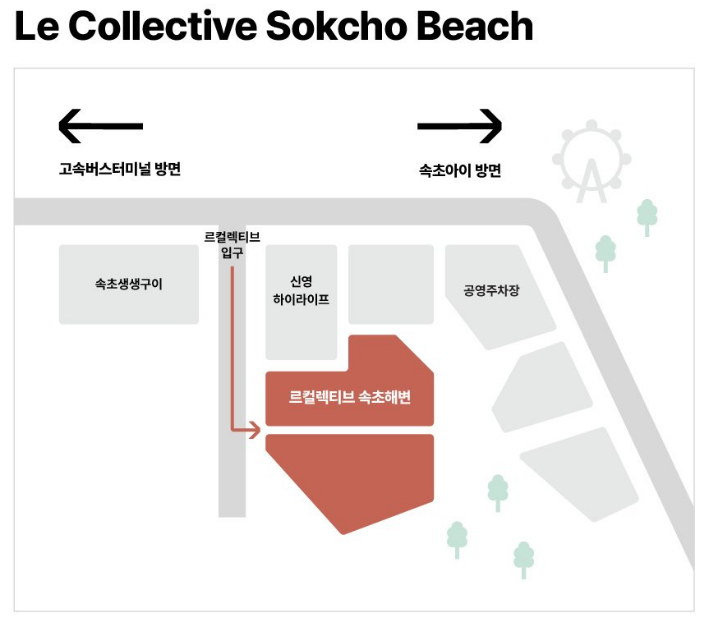 답변 : 숙소 건물은 속초생생구이와 신영하이라이프 사이를 통해 들어올 수 있습니다. 가장 정확한 길 안내를 위해 내비게이션에 *[르컬렉티브 속초해변]*을 검색해 주세요.