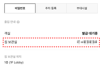 비밀번호 : 체크인 당일, 알림톡/문자를 통해 확인 가능 ( 오후 13시 일괄 발송 )