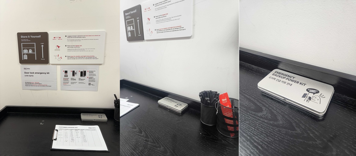 짐보관실 내 도어락 긴급 키트가 배치되어있습니다.