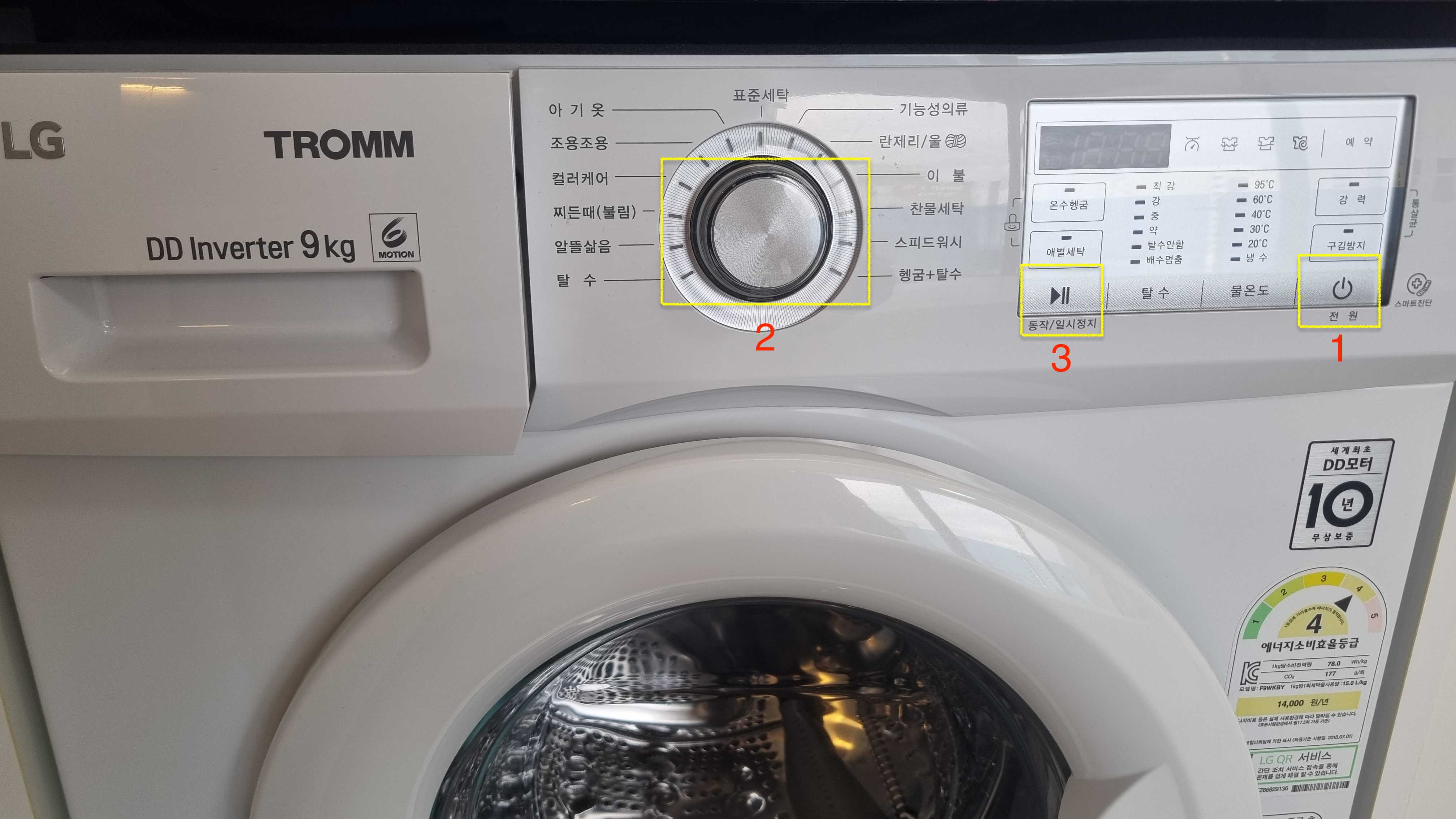 3. 가운데 휠을 돌려 원하는 세탁코스를 선택한 후 동작 버튼을 누릅니다.