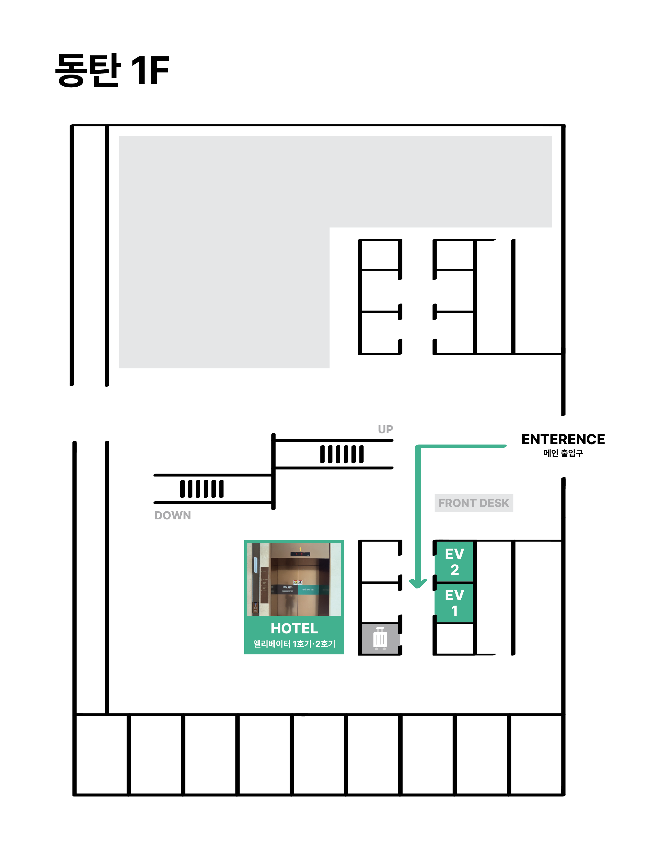A1. 어반스테이 전용 엘리베이터를 이용해주셔야 숙소 층 버튼을 누르실 수 있습니다.