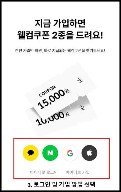 하단의 원하시는 로그인 방법 또는 회원 가입을 선택 후 로그인해 주세요.
