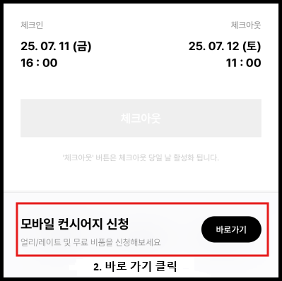 예약정보 페이지에서 모바일 컨시어지 바로가기 클릭