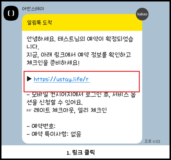 예약 확정 및 체크인 알림톡에서 링크 클릭