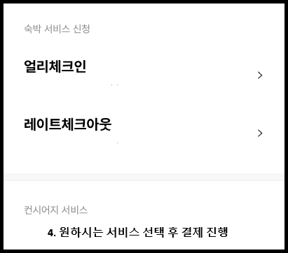 예약 연동 이후 다양한 추가 서비스 상품을 확인 및 신청 할 수 있습니다.