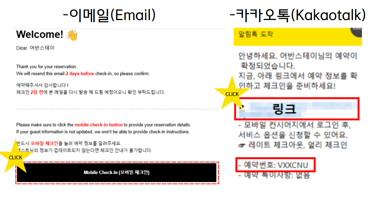 ※체크인 당일 15시까지 체크인 정보를 수신하시지 못한 경우에는, 모바일 프론트로 문의 바랍니다.