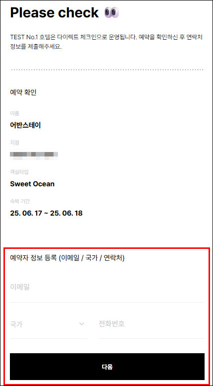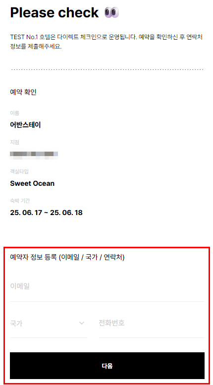 연락처의 수정이 필요하시거나, 체크인 당일 체크인 정보의 재 발송이 필요하신 경우