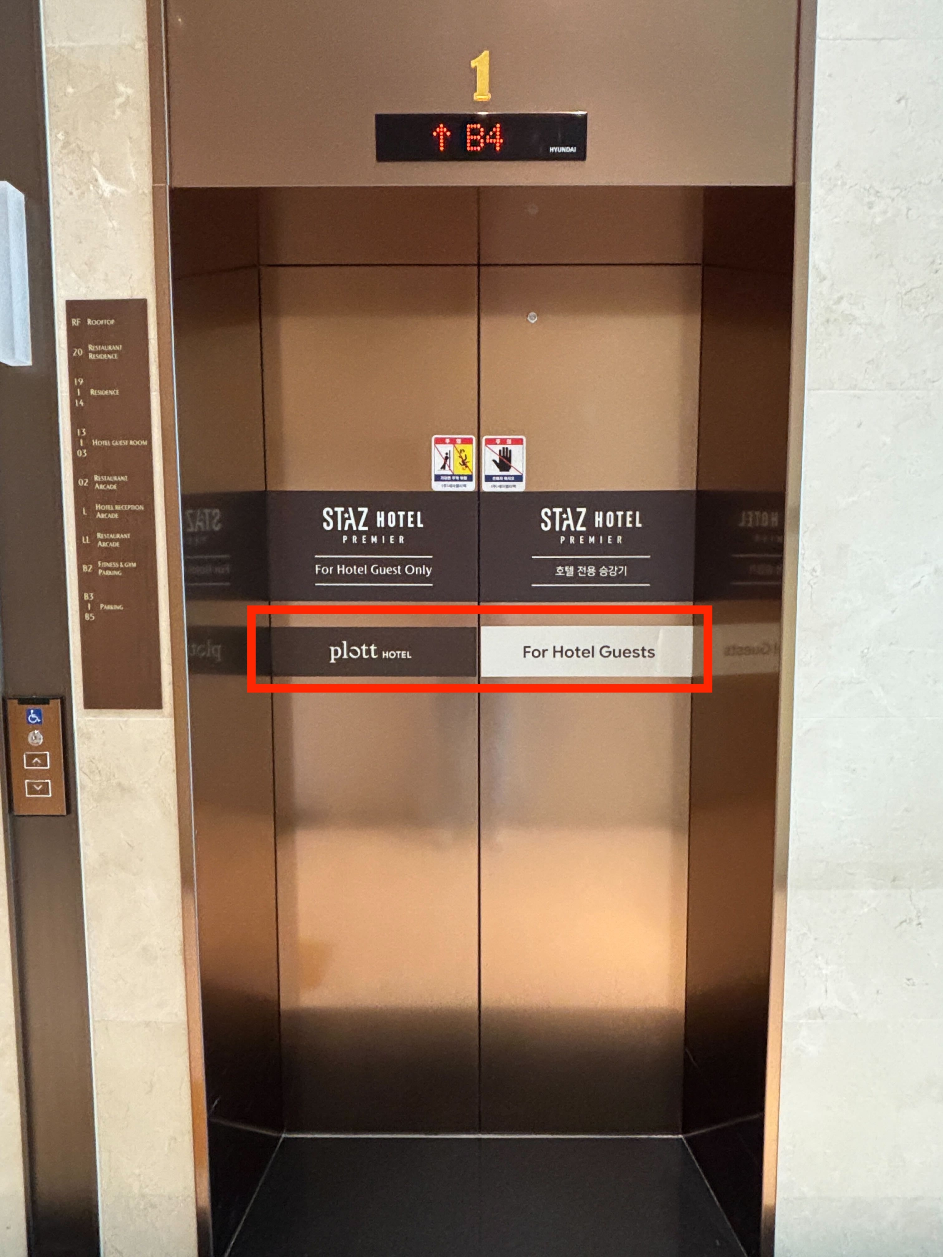 可使用 Plott 專用電梯(請認明標有 Plott 標誌的 1號、2號電梯)。