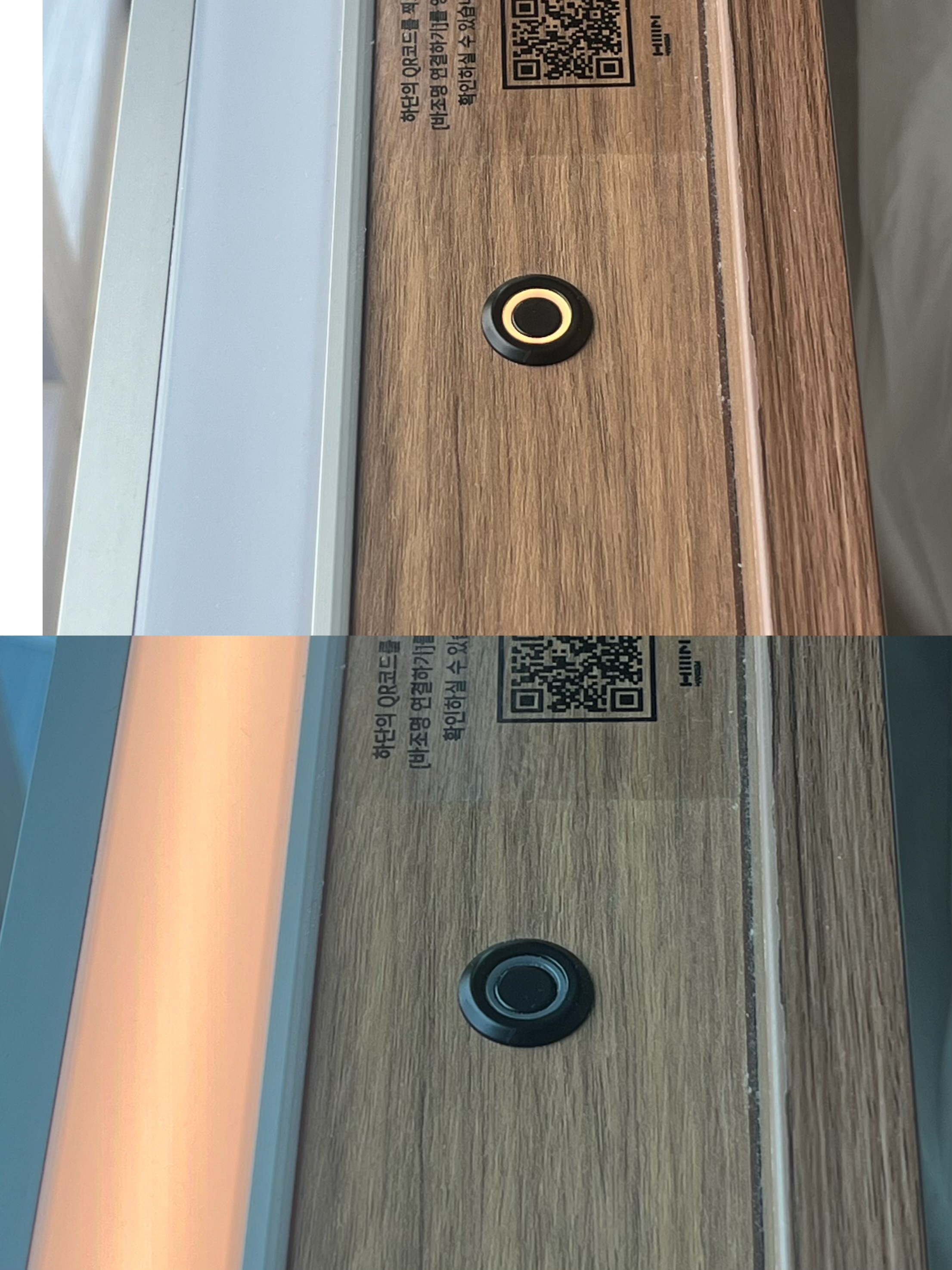床頭燈可透過按下照片中的圓形按鈕調整為三段亮度。