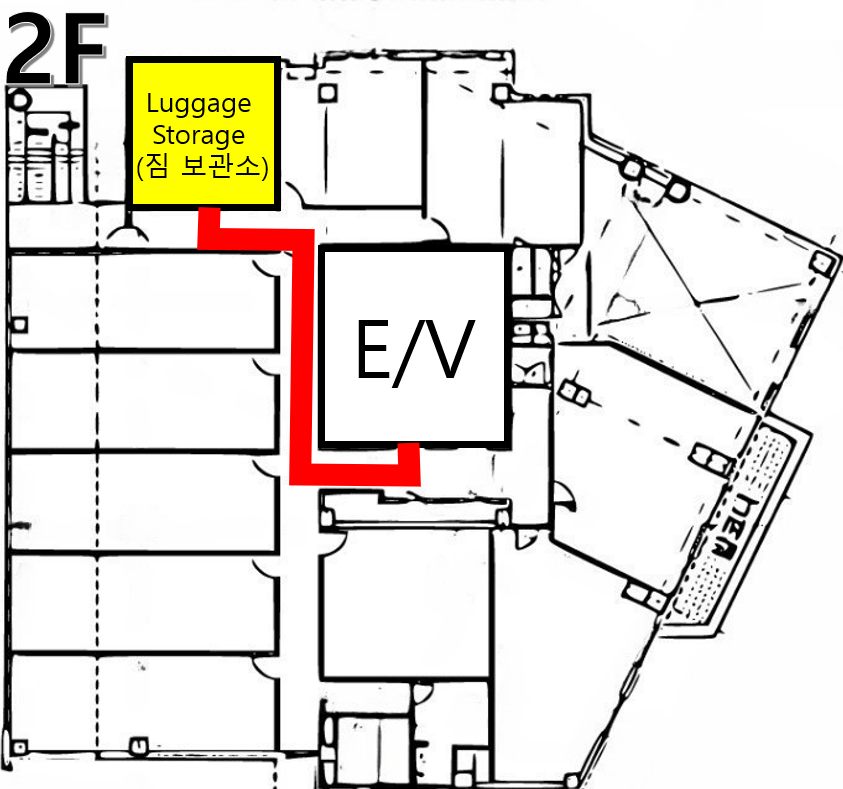 若门锁无法正常使用,请使用行李寄存室(2楼 203号房)内的紧急开锁工具包。