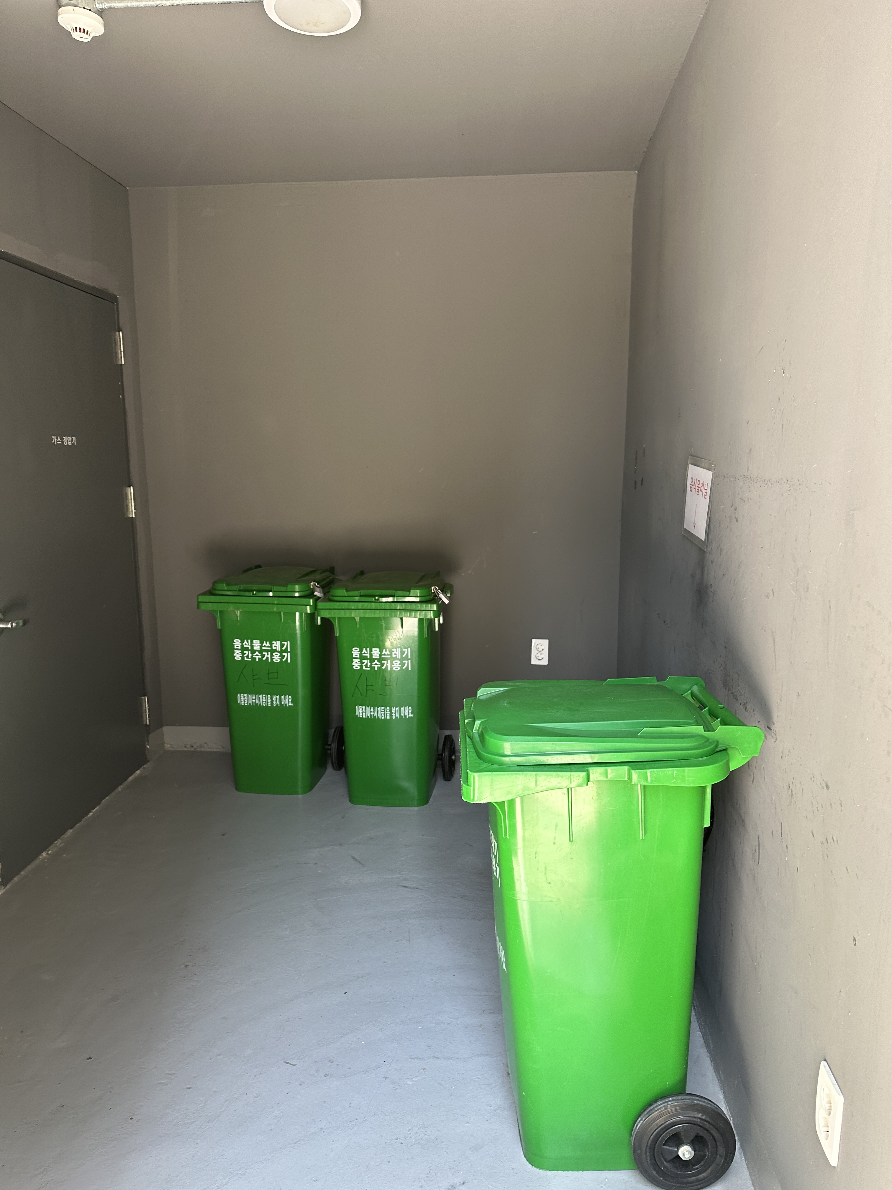 垃圾处理方式:请前往大楼内的 GS25便利店 购买指定垃圾袋后,按分类将垃圾投放至指定地点。