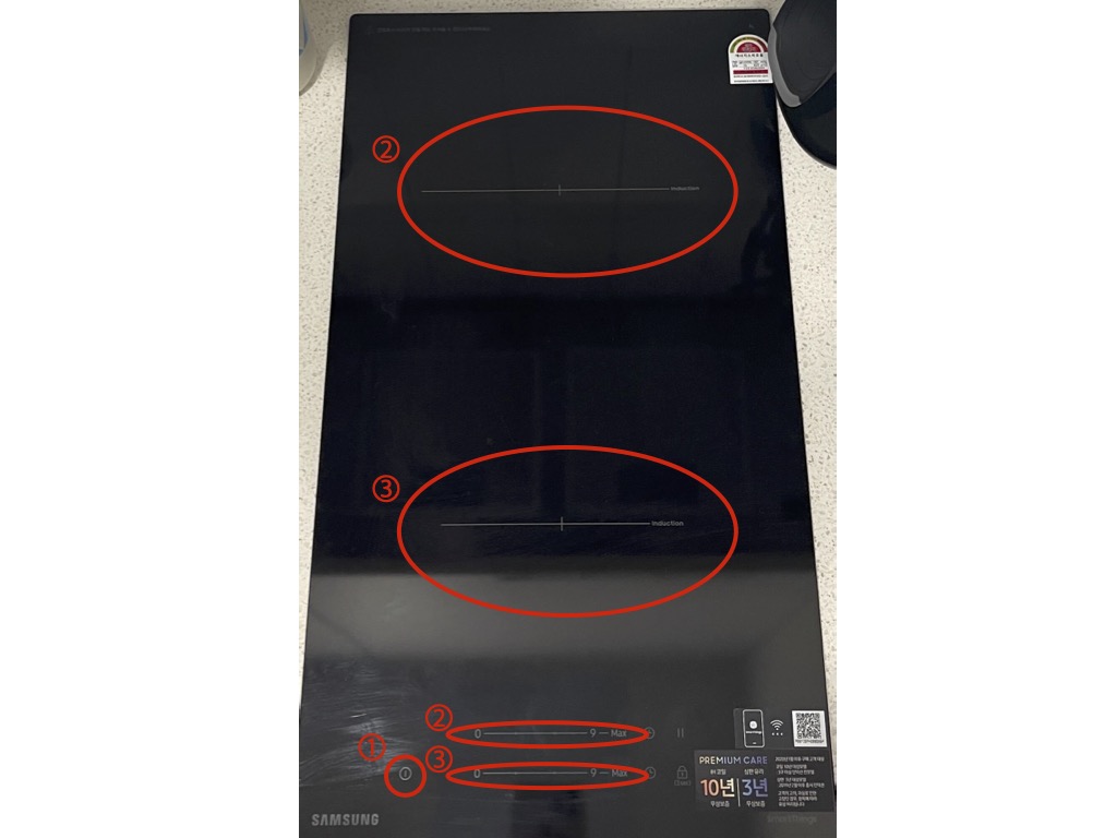 将锅具放置于②或③感应区