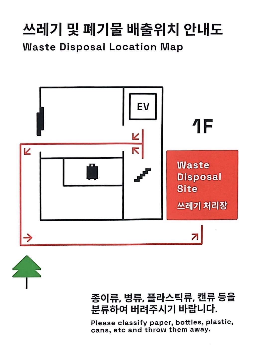 请将房内垃圾分类后,放入玄关旁的垃圾桶内。
