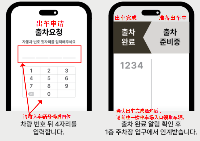 ※ 提交申请后,一般5–10分钟内车辆会在1F入口处等候