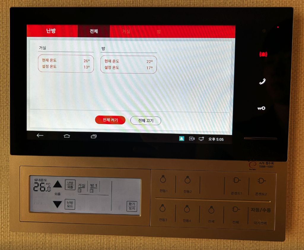 操作方式:地板暖气可通过各房间的温控器及客厅墙面面板控制。