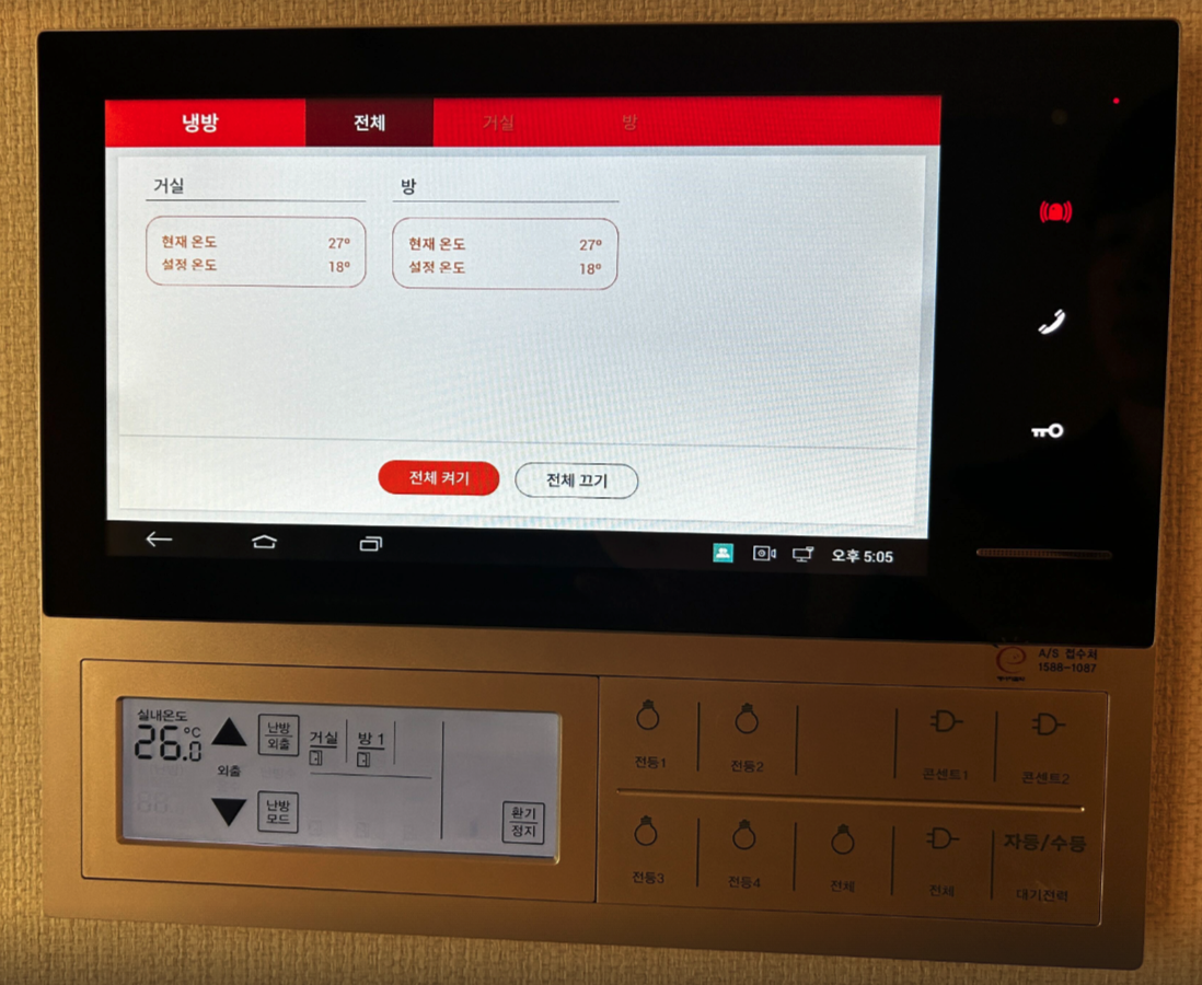 操作方式:客厅墙面面板或空调遥控器可分别控制客厅和房间。